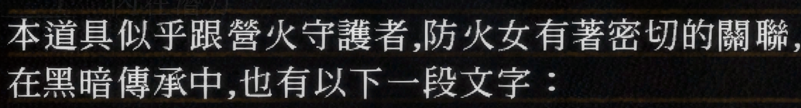最近在 @莫伊图拉 的安利下开始了魂一的受苦之旅并借助 DSfix 打上了一系列的 MOD,其中有个很受欢迎的界面文字与会话对白高清 MOD 能够很好的提升玩家的游戏体验,不过该 MOD 对繁体中文的支持不太好,只有界面文字得到了调整并且许多文字有污点(位图字体没对准所致)。在打完小隆德四天王后我的忍耐达到了极限(你这不怎么看道具说明和对白的人有什么要忍耐的←_←),遂对位图字体进行重绘做出了此 MOD。